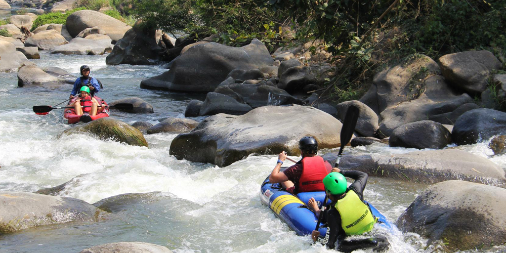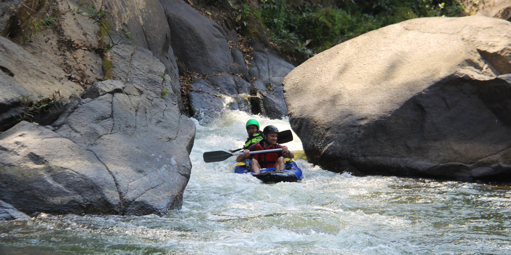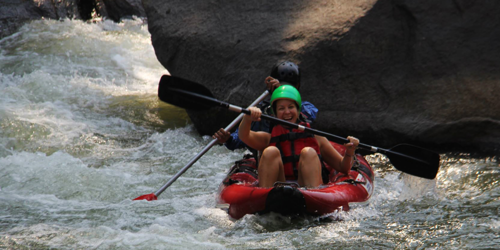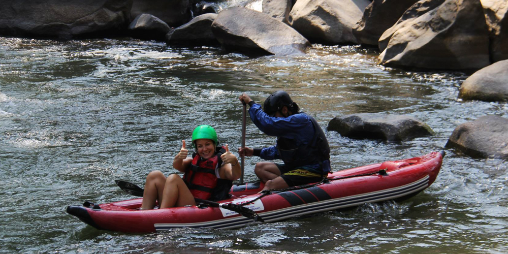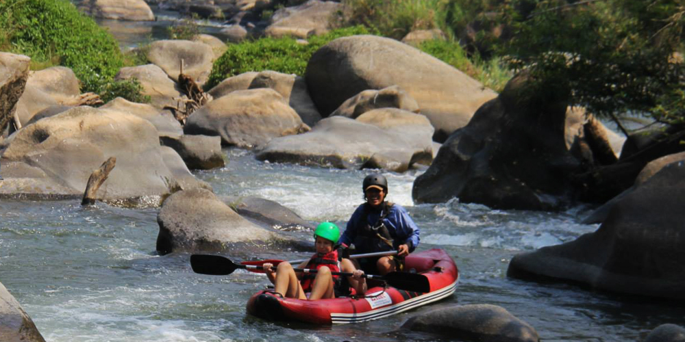 We pick you up at 8:30 AM and take you for a drive to Mae Taeng river. The drive takes about two hours, so we start canoeing around 11 AM when we are all set and ready for the adventure. Canoeing down the Mae Taeng river with its curves, rapids and rocks is a great adventure indeed! But don’t worry as we provide all the safety equipment and each canoe comes with a local instructor who knows the river by heart and guides you safely all the way.